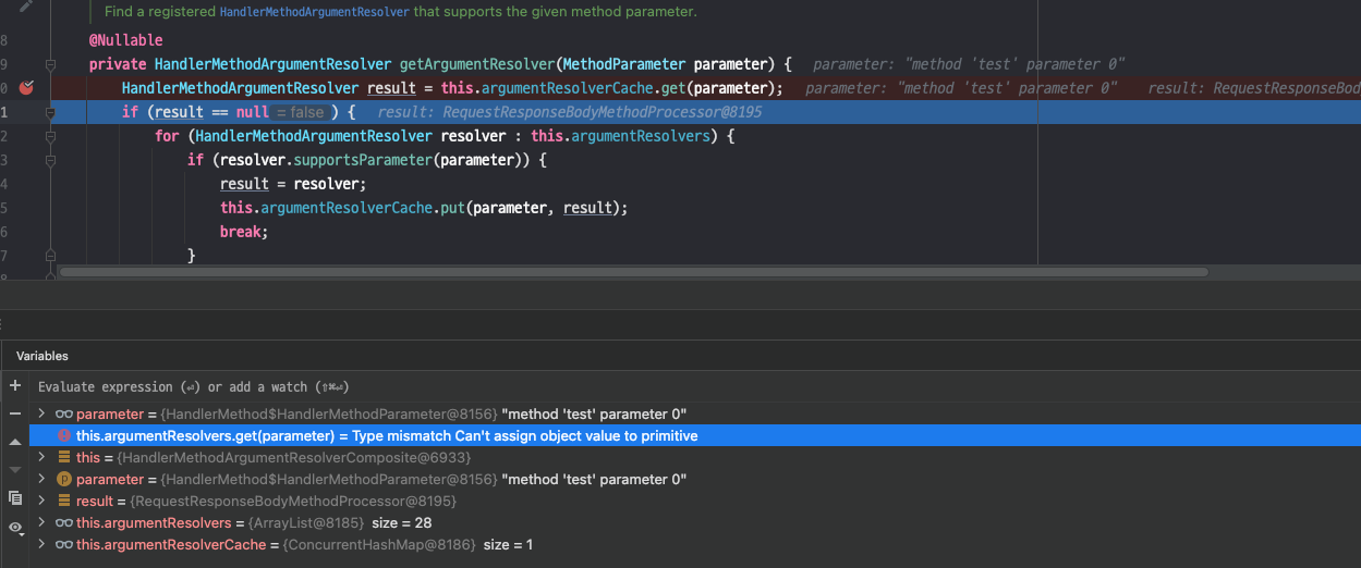 위와 같이 HandlerMethodArgumentResolverComposite 타입의 Resolver 들이 여러개가 존재하는데