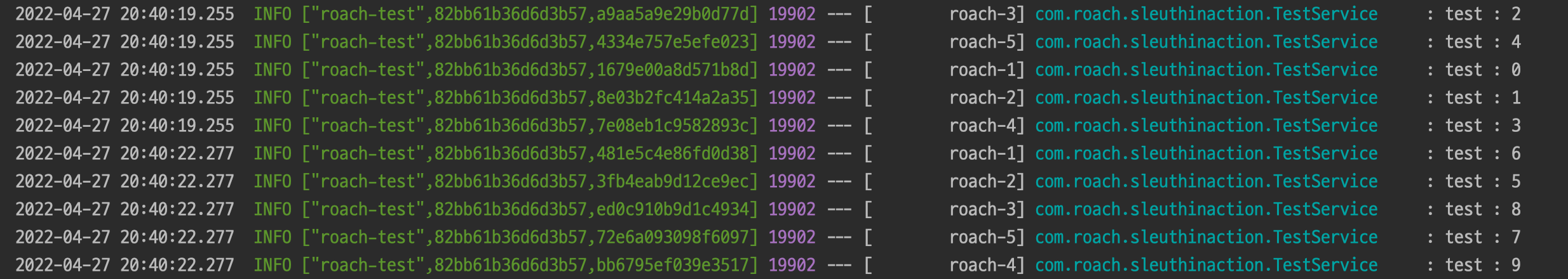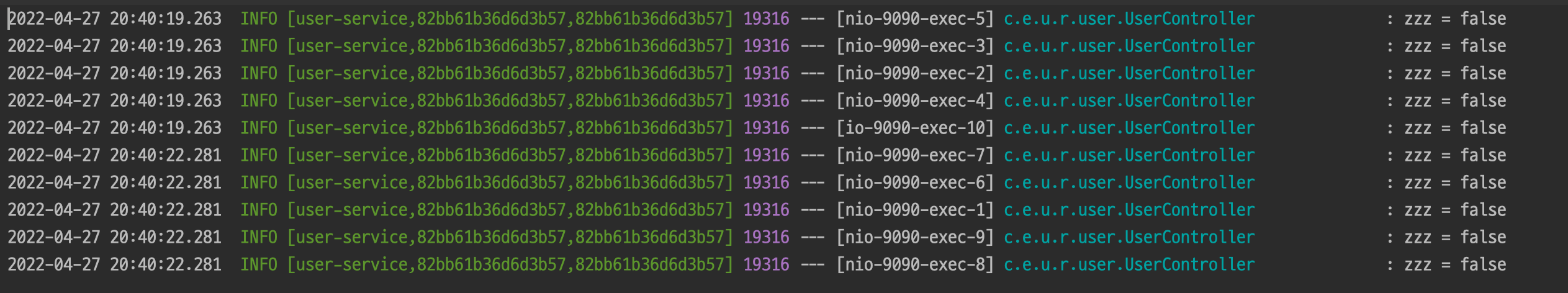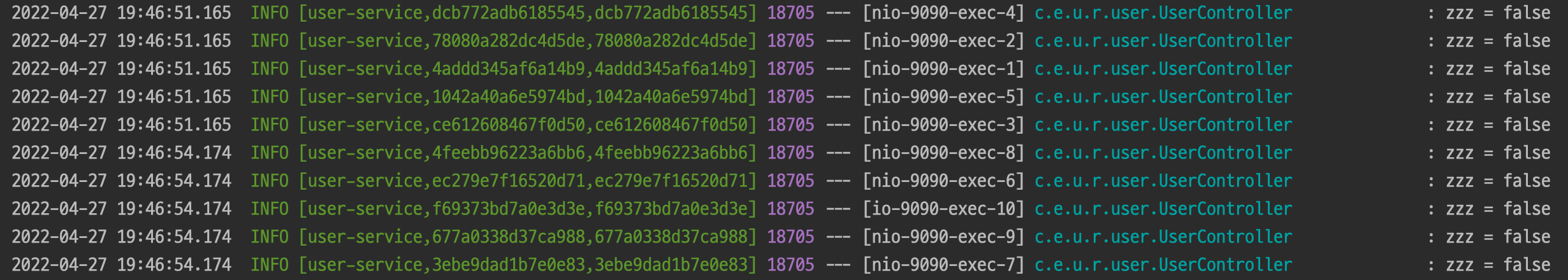 열번 요청을 보내고 나서 로그를 한번 확인해보자. 모두 TraceId 가 같은 것을 확인할 수 있다.