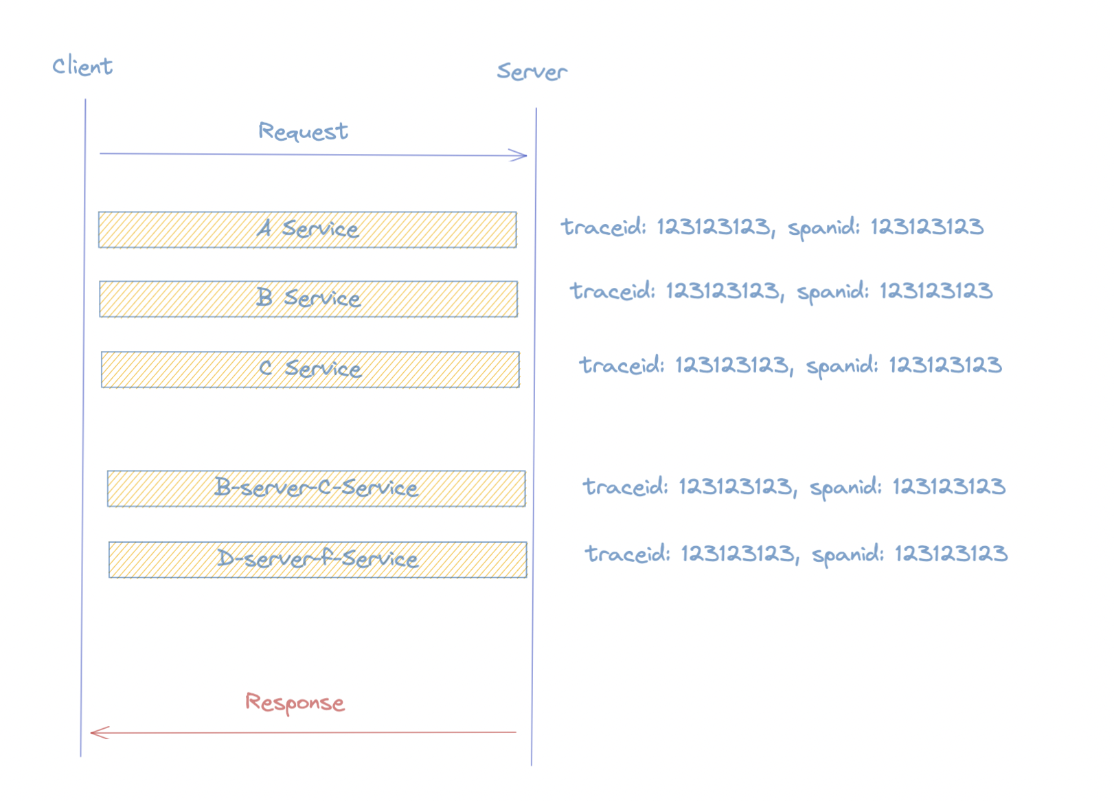우리는 MSA 환경의 Spring 에서 주로 Sleuth 라는 Library 를 사용한다. Sleuth 는 B3-Propagation 을 이용하여 서버간의 Request 흐름을 알 수 있게 해준다. Zipkin 등을 이용하면 UI 측면에서 쉽게 추적할 수 있다. 일단 Sleuth 가 어떻게 되어 있는지 간단하게 살펴보자. 기본적으로 Sleuth 는 아래와 같이 trace_id 와 span_id 를 가진다.