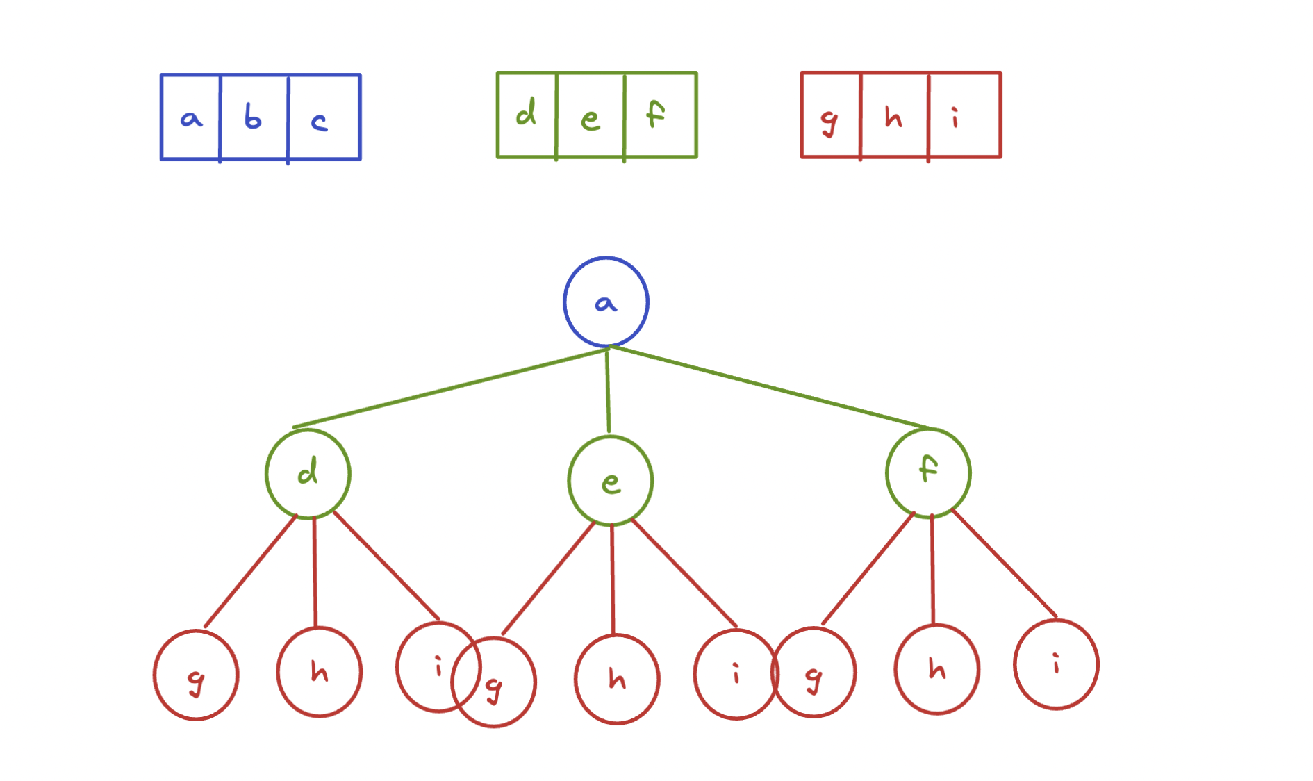 보통 이렇게 Brute-force 에서 벗어나서 다른 방법으로 대응해야 하는 경우에는 나는 이 상황에 어울리는 Data Structure 가 있는지 확인해보는 편이다. 예를 들어 3개로 배열을 늘린뒤 Tree 구조로 한번 어떻게 풀 수 있을지 생각해보자.