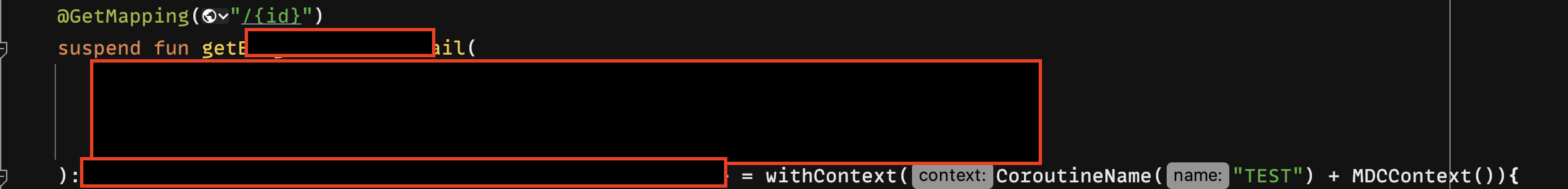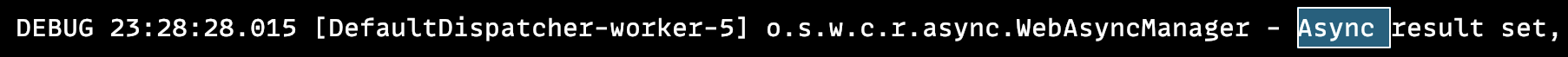컨트롤러와 Spring 내부 구현에서 이름이 다른데 요건 Kotlin 에서 Java 로 가서 그런걸로 보인다. 내가 이렇게 추측하는 이유는 Thread Local 에서 저장하는 MDC Context 를 잘 물고 갔기 때문이다. 현재 별도의 Copy 는 해주고 있지 않아서, 별도의 ThreadPool 이 아니고, Controller 단에서 선언한 ThreadPool 을 이용하고 있음을 알 수 있다.