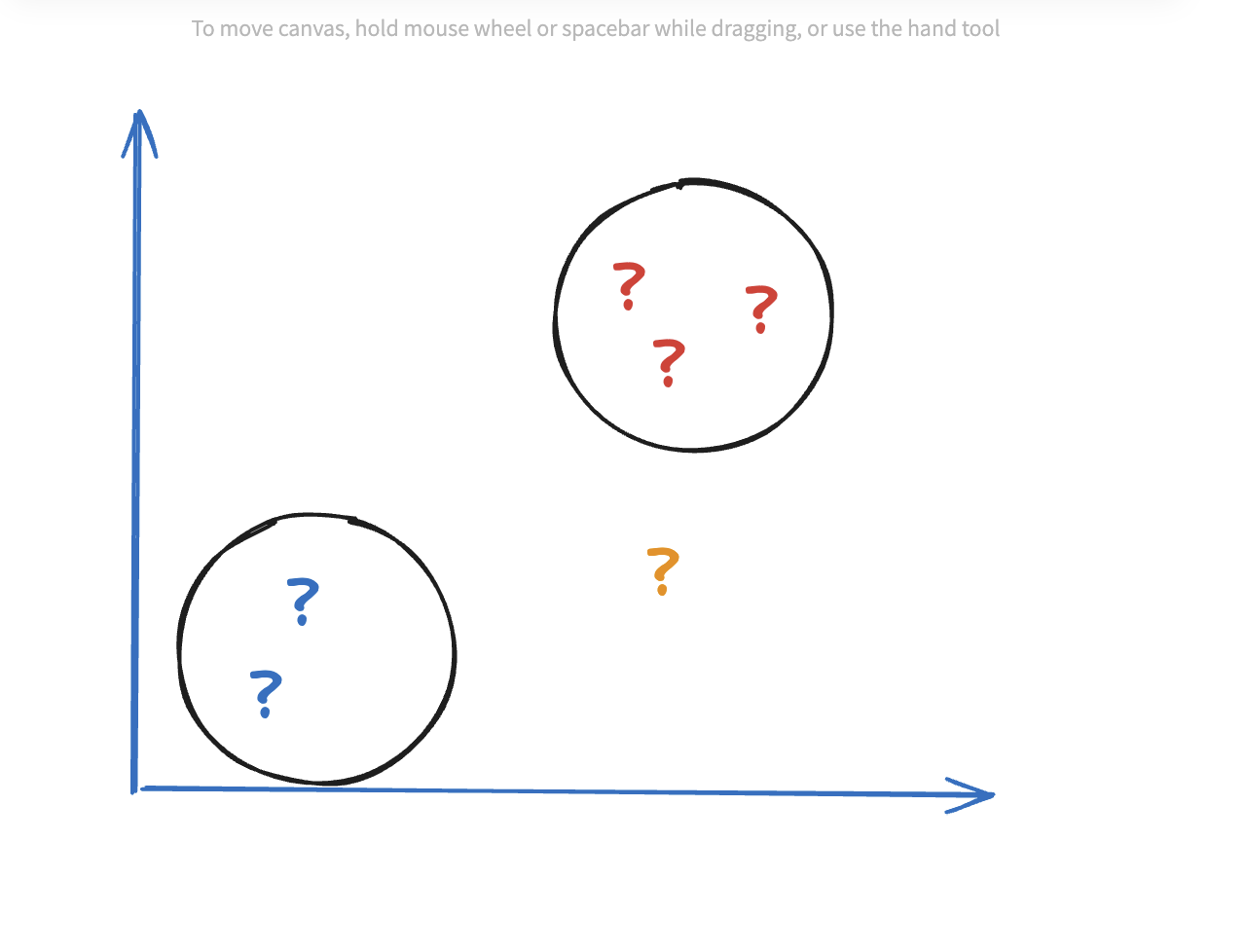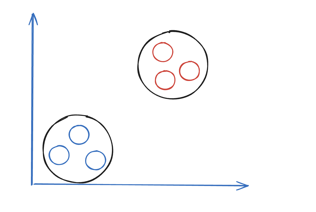 비지도 학습은 데이터에 대한 특성(feature) 만 알고 있는 상태이며 어떤 타겟으로 이뤄져야 하는지는 모르는 상태입니다. 즉, "빨간색", "주근깨 있음", "과일" 이라는 특성이 있을때 이 특성이 "딸기" 라는 타겟으로 이어져야 하는지 모르는 상태입니다. 따라서, 비지도 학습의 경우 어떤 타겟 데이터인지 정확하게 알수 없으므로 데이터 분포 형태를 통해 추측만이 가능합니다. 위와 같이 특성 데이터를 통해 데이터를 나누는 것을 군집(clustering) 이라고 부릅니다.