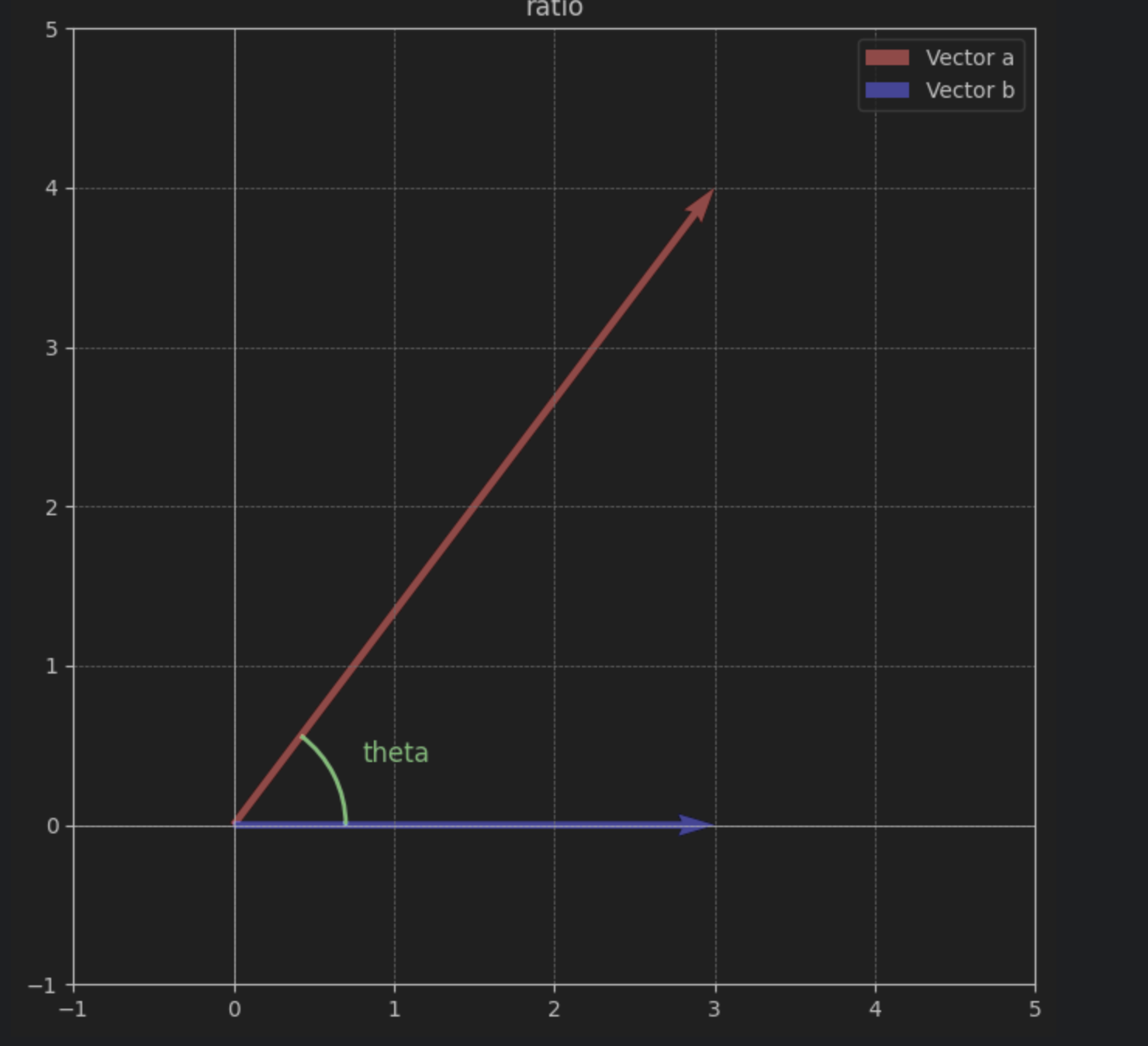 $$ {a} \cdot {b} = \|{a}\| * \|{b}\| * \cos \theta $$