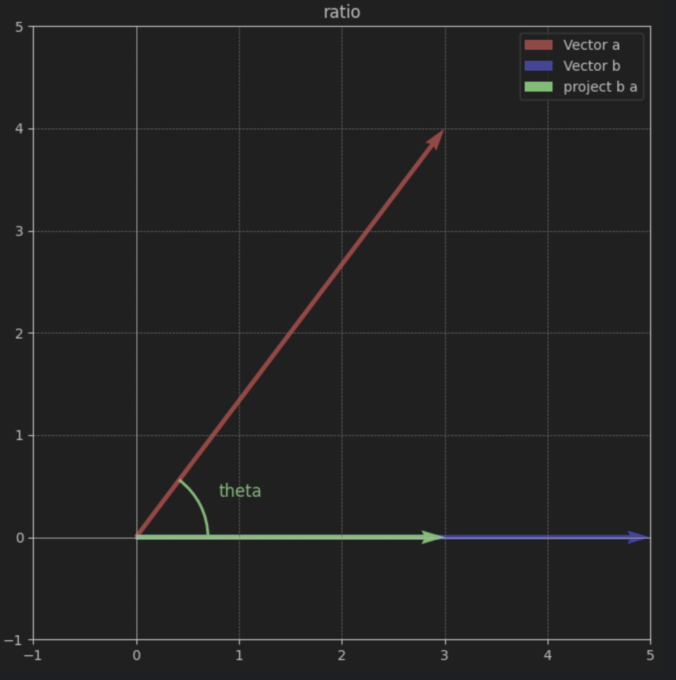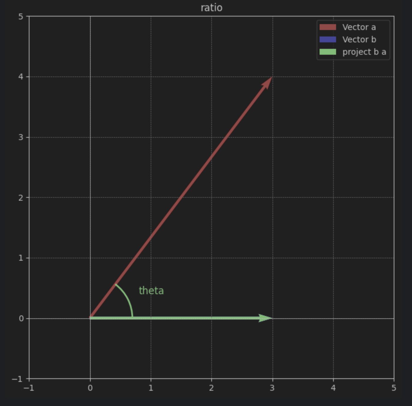 즉, 이렇게 놓고 보면 정사영된 길이에 벡터 b 의 크기를 곱하면 결국 해당 벡터의 사이즈를 얻을 수 있음을 역순으로 알 수 있다.