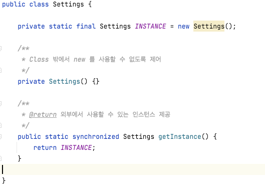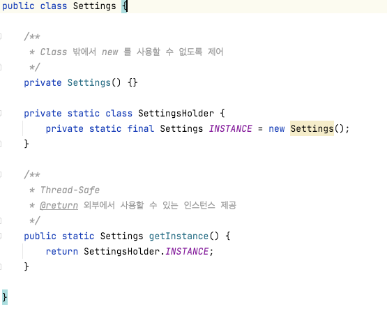 이렇게 했을때의 장점은 Settings 를 호출할때 Lazy 하게 객체가 생성이 가능하다.
