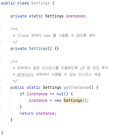 예를 들면 우리가 설정을 하는 메뉴를 여러 인스턴스로 만들게 된다면 인스턴스 마다 설정이 달라지는 등 많은 문제를 발생시킬 수 있다.