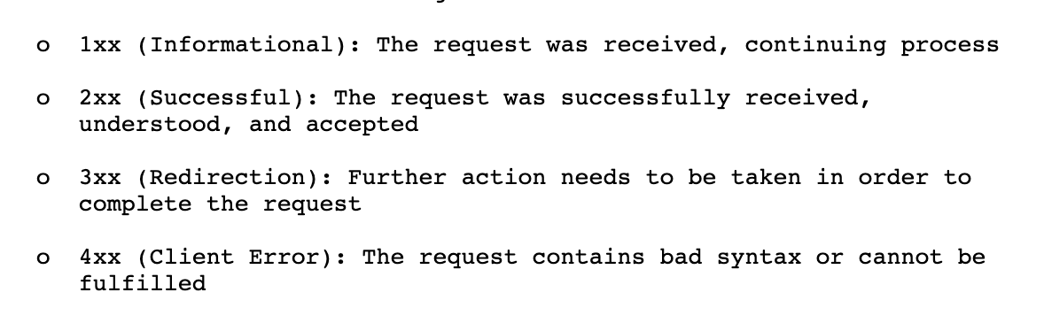 네번째로는 HTTP 상태코드는 RFC7231 을 준수해야 하며 대략적인 내용은 아래와 같습니다.