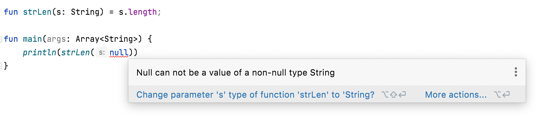 그렇다면 다시 아까의 얘기로 돌아와 코틀린에서는 이를 어떻게 컴파일 시점으로 가지고 왔는지 코틀린 코드로 한번보자.