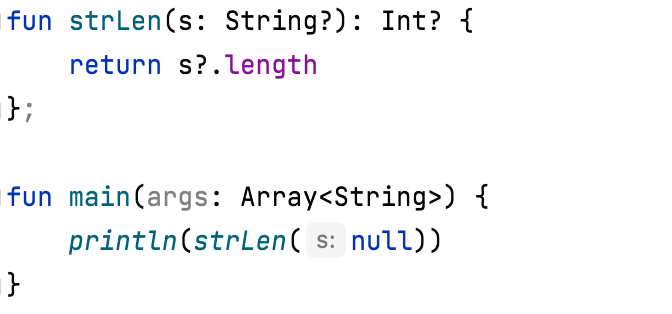 '?.' 은 'if ( s! == null) return s.length else null' 과 같다.