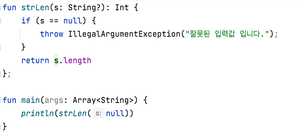 '?.' 은 'if ( s! == null) return s.length else null' 과 같다.