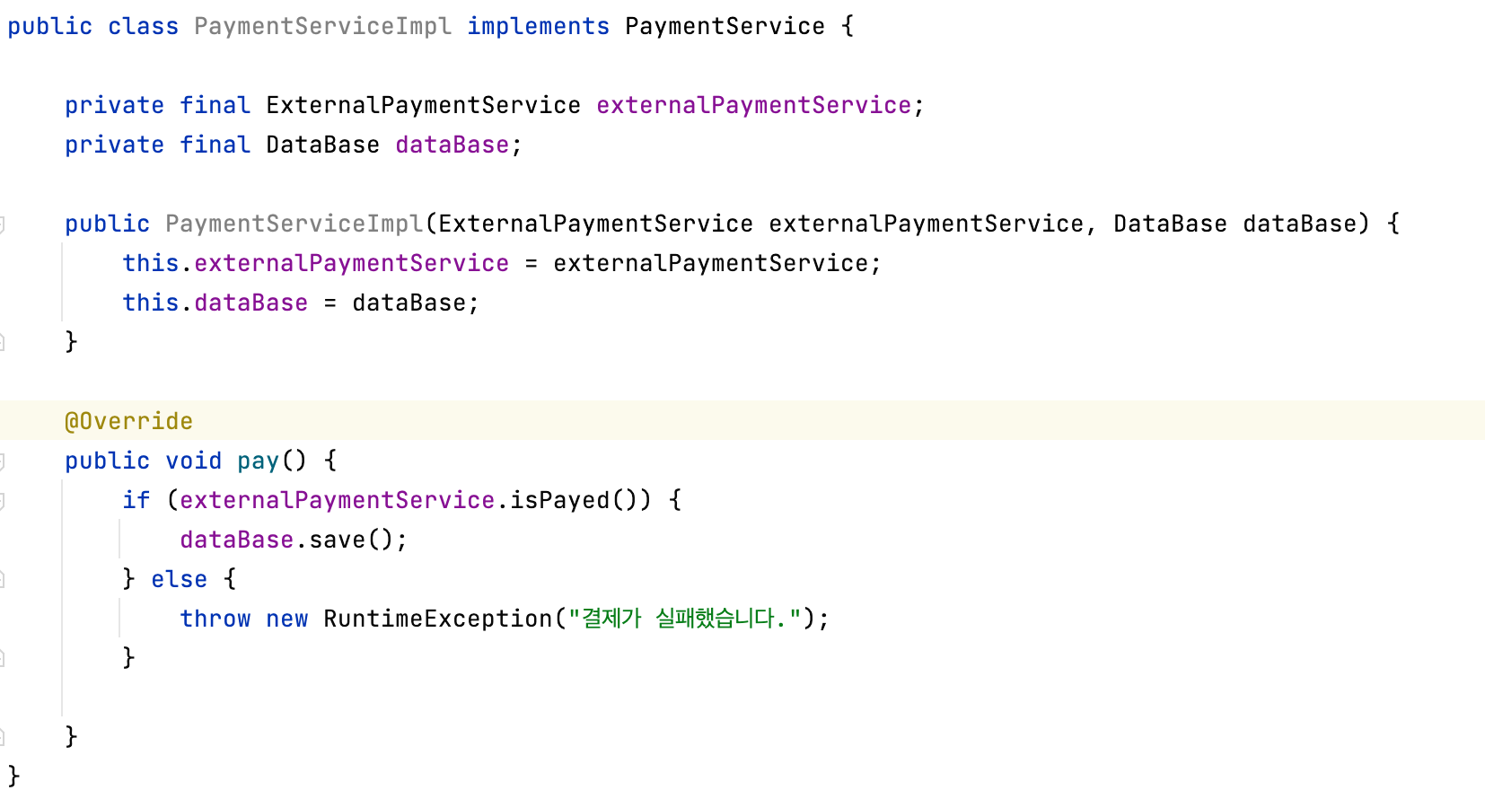 위와 같이 테스트 더블을 하면 외부 결제는 반드시 성공한다는 조건으로 테스트가 가능할 것 이다.