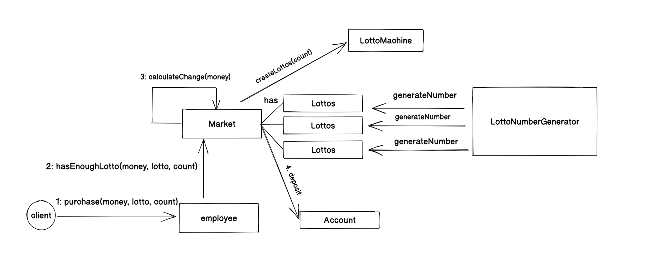 로또 머신은 로또를 생산해 내는 역할을 가지고 있고, 마켓은 협력을 요청할 수 있다.