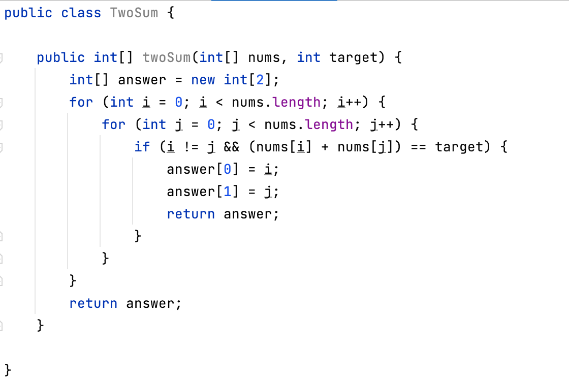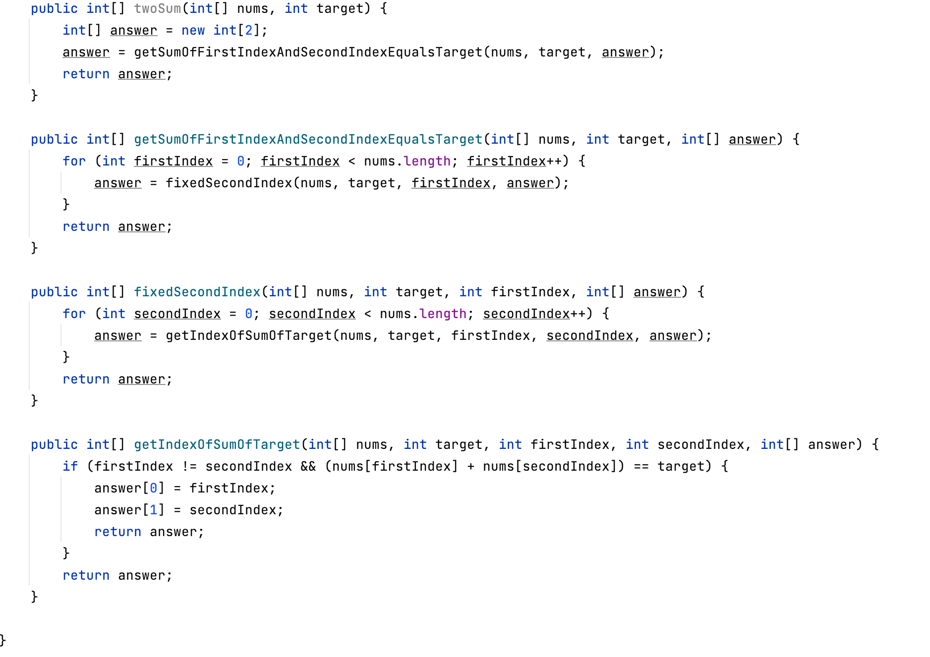 LeetCode 의 대표문제인 TwoSum 을 O(n^2) 복잡도로 푼 해결방법이다. (일부로 이런거니.. 댓글은 노노)