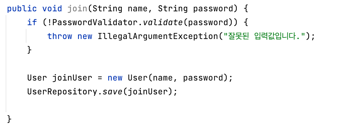 이제는 Password 가 validator 가 되지않는다면 예외를 호출한다.