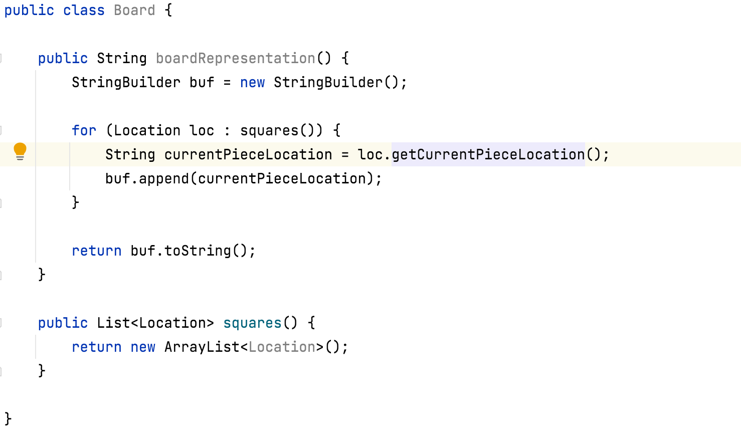 이제 Board 는 Location 에 위치한 Piece 의 정보를 추가하게 된다.