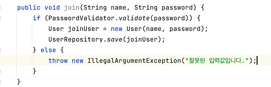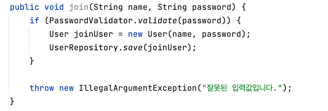 이제는 Password 가 validator 가 되지않는다면 예외를 호출한다.