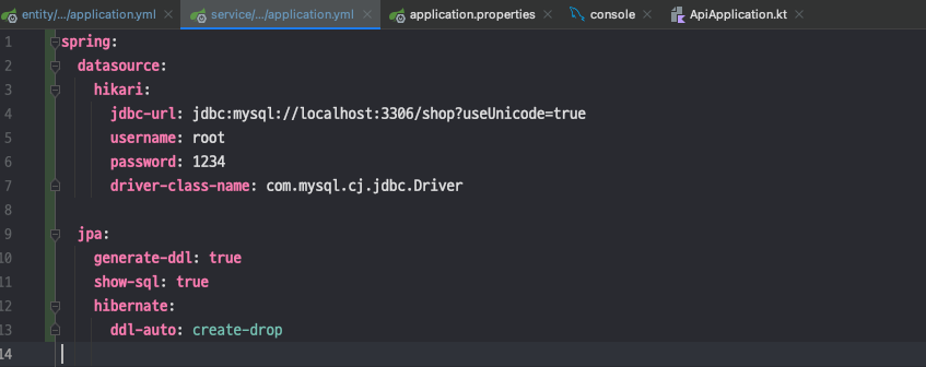 그래서 아래와 같이 Service Module 에 application.yml 에 값을 추가해주니 정상적으로 실행됬다.