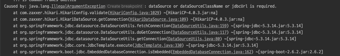 위와 같이 설정을 해줘도 DataSource URL 이 없다고 나온다.