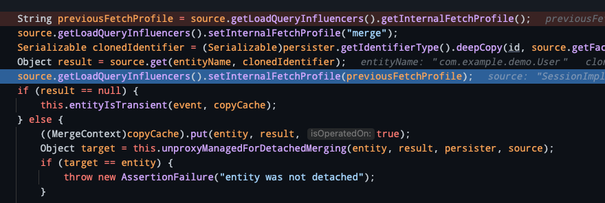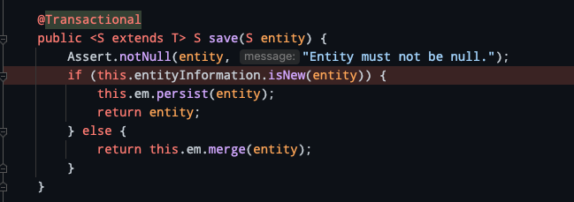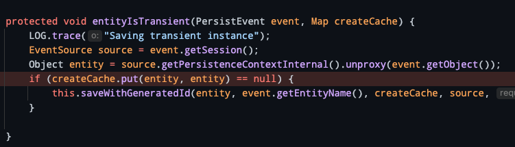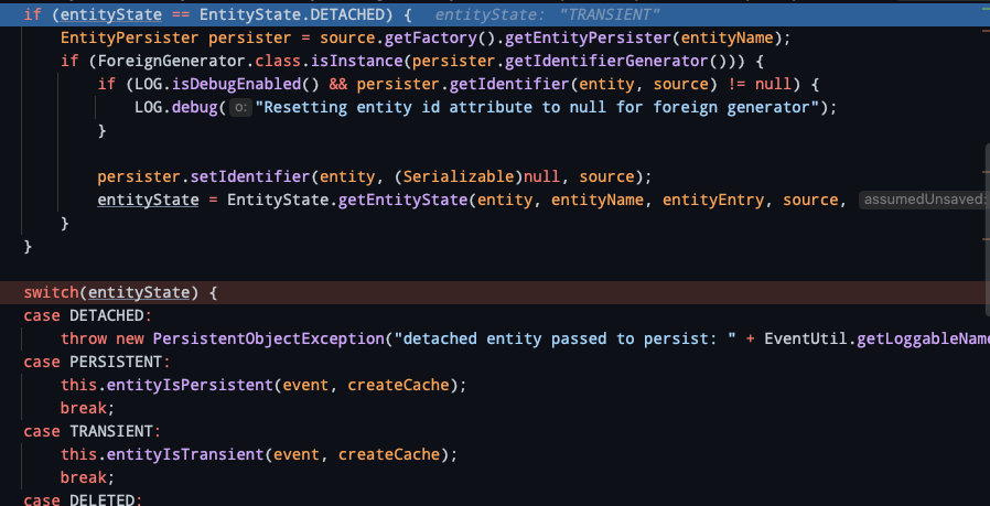 일단은 코드를 쭉쭉넘겨 entityIsTransient 부분으로 이동해 봅시다.