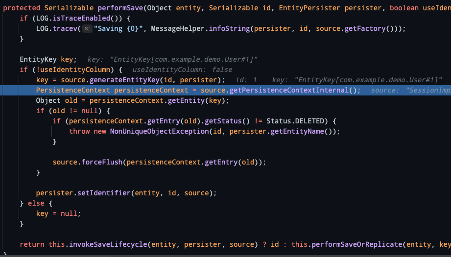 점점 더 들어가다 보니 performSave 라는 메소드인 Save 를 수행하는 과정이 나옵니다.