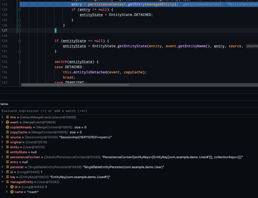일단 위의 내용은 우리에게는 그다지 중요하지 않으니 넘어 가고 아래 코드를 쭉죽 내려가다보면 Entity 의 상태에 따라 특정 로직으로 처리하는 부분이 나옵니다.
