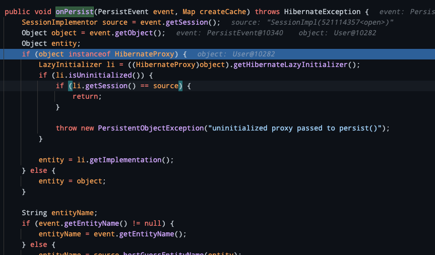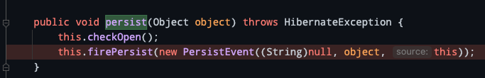 찾기 위해 DefaultPersistEventListener 라는 클래스로 이동합니다.