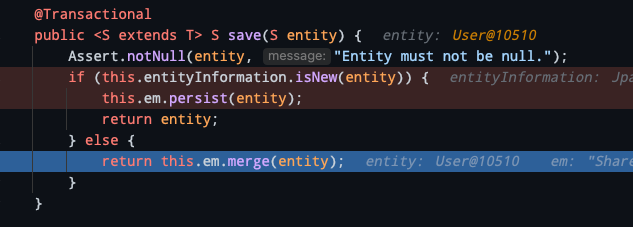 일단 save 메소드를 호출하게 되면 SimpleJpaRepository 의 save 메소드로 이동합니다.